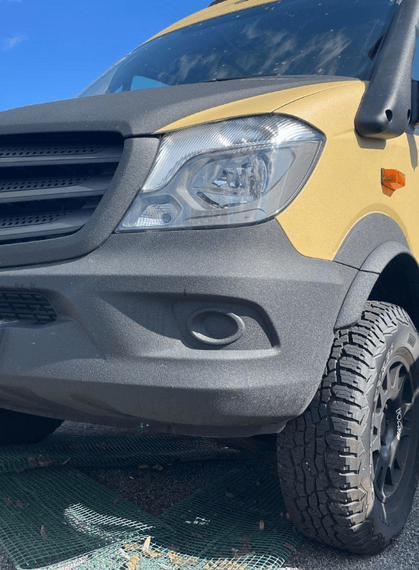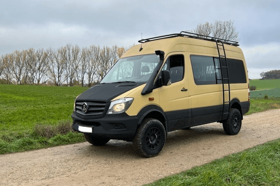Montiert sind von DutchVanParts ein Dachträger, ein Heckträger mit Box und eine Seitenleiter. Eine Warn Winde ist ebenfalls verbaut.